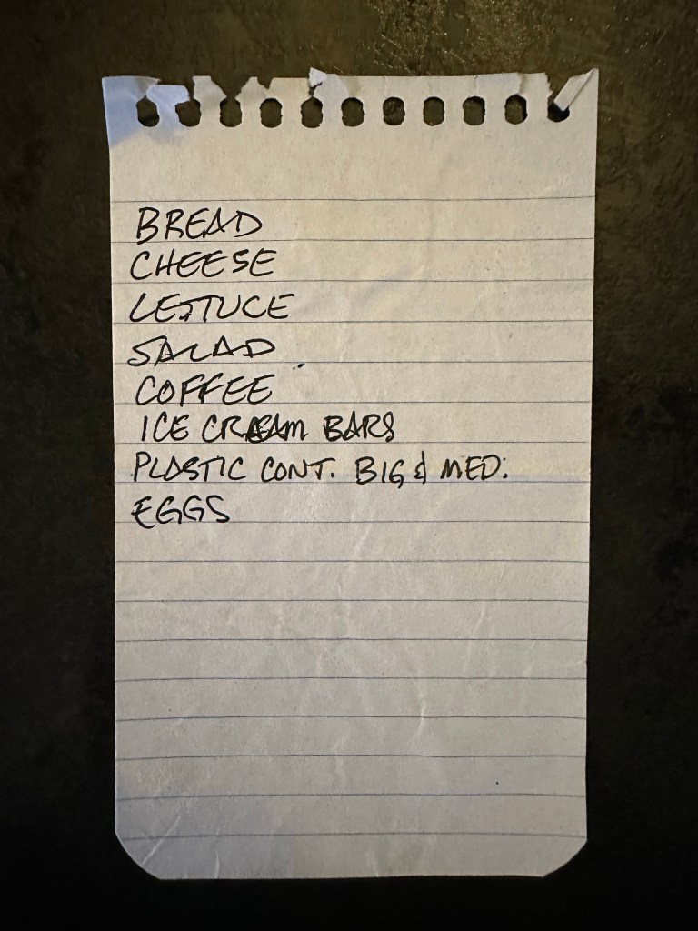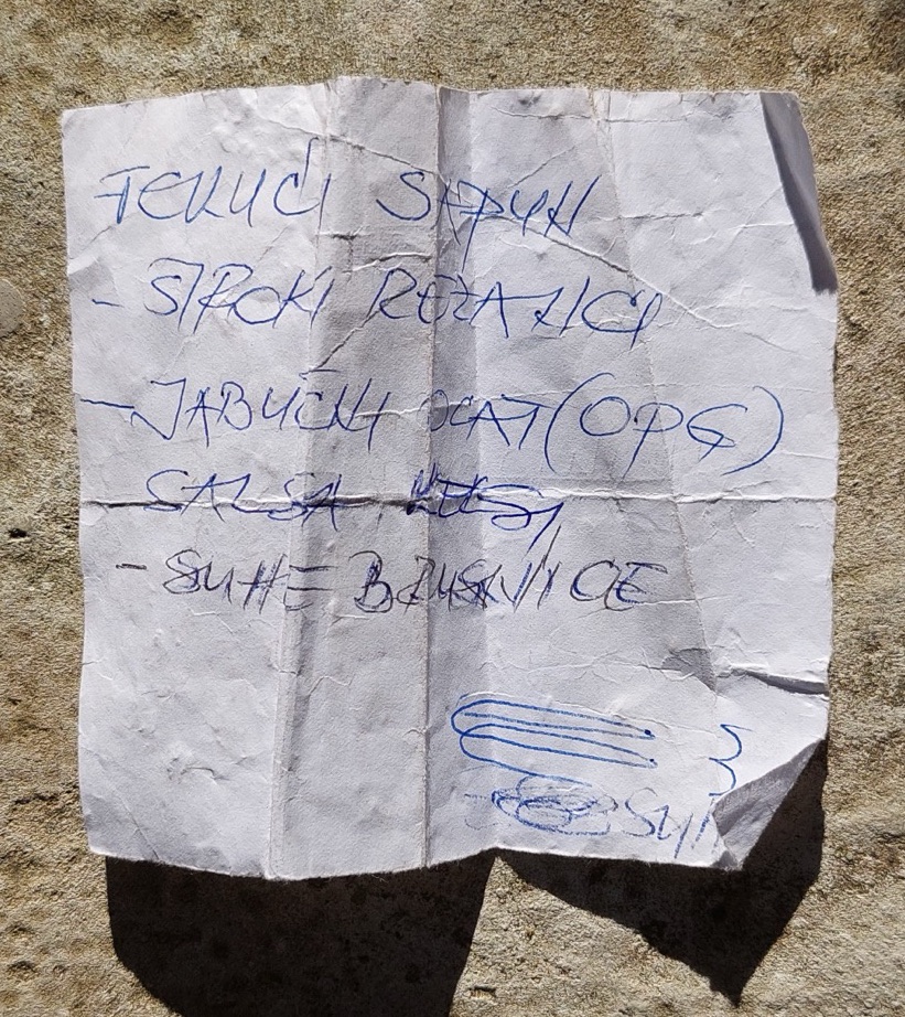 „Hello, my name is Sara and I come from Croatia. This list for grocery was found on 19.03.2025 in the city of Rijeka. I have translated the list for you above”
