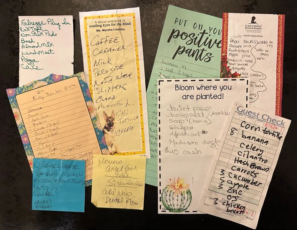 Whenever I would go to that store I would look around the parking lot, often finding one or two lists either on the ground or left in a shopping cart.
