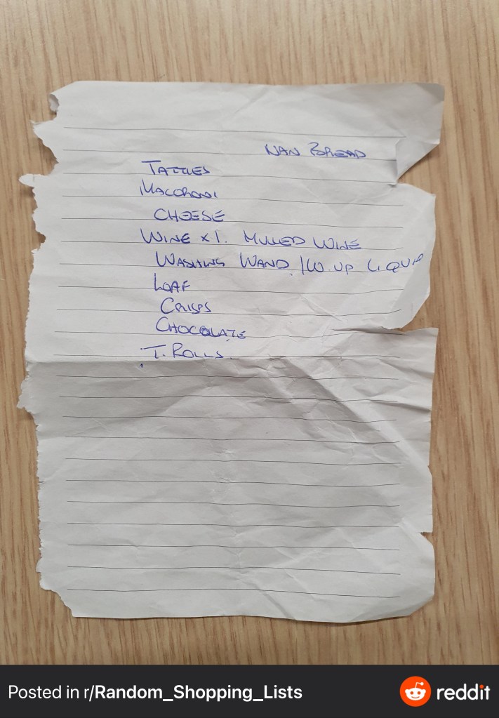 This guest content comes from found shopping list collector, WitchHunterXI, on Reddit – r/Random_Shopping_Lists.