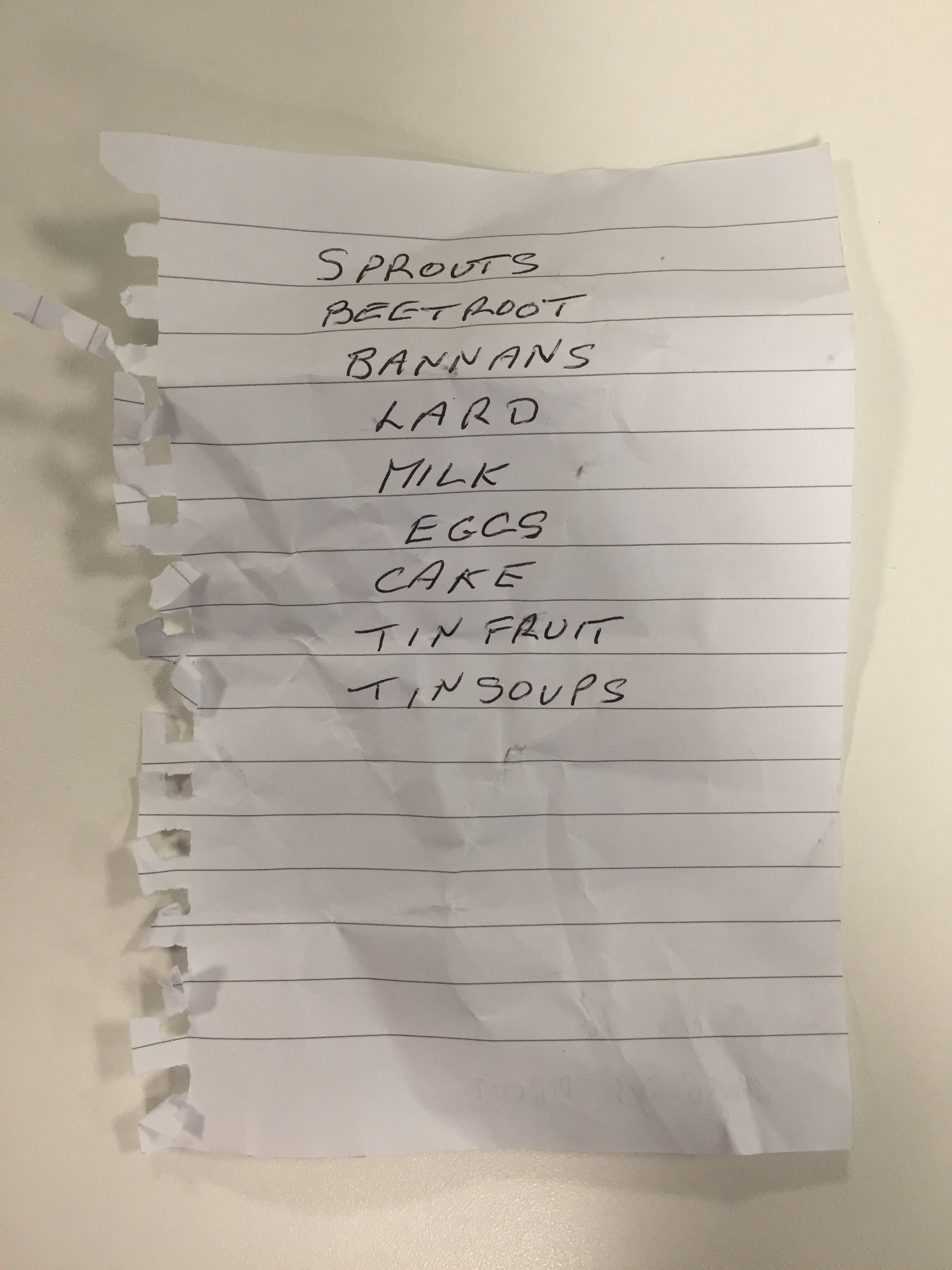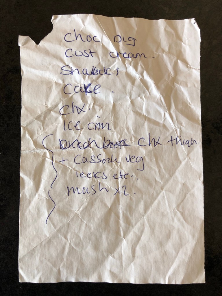 A donation to the shopping list archive from Oxfordshire in the UK. This list is likely from an older person.