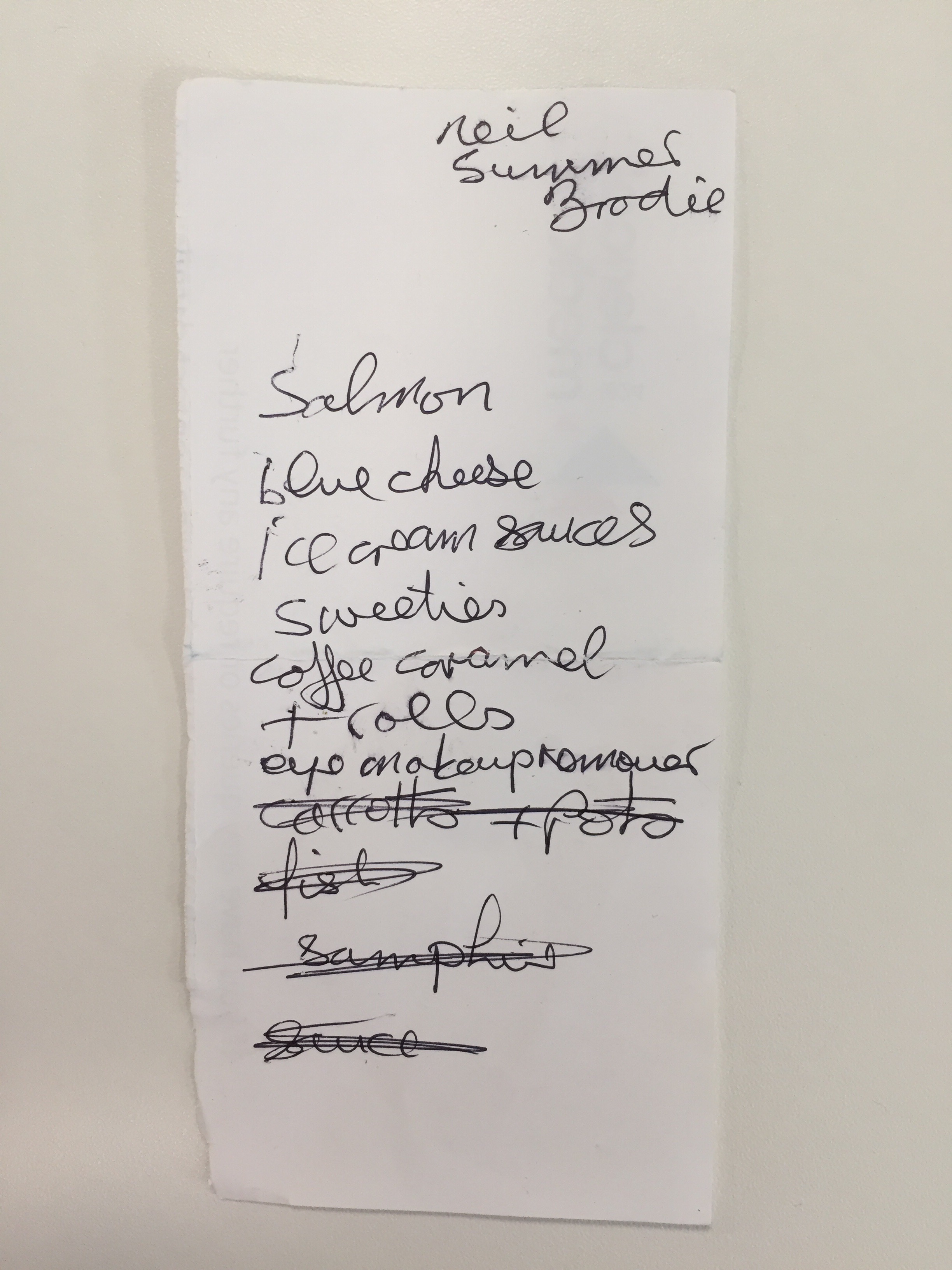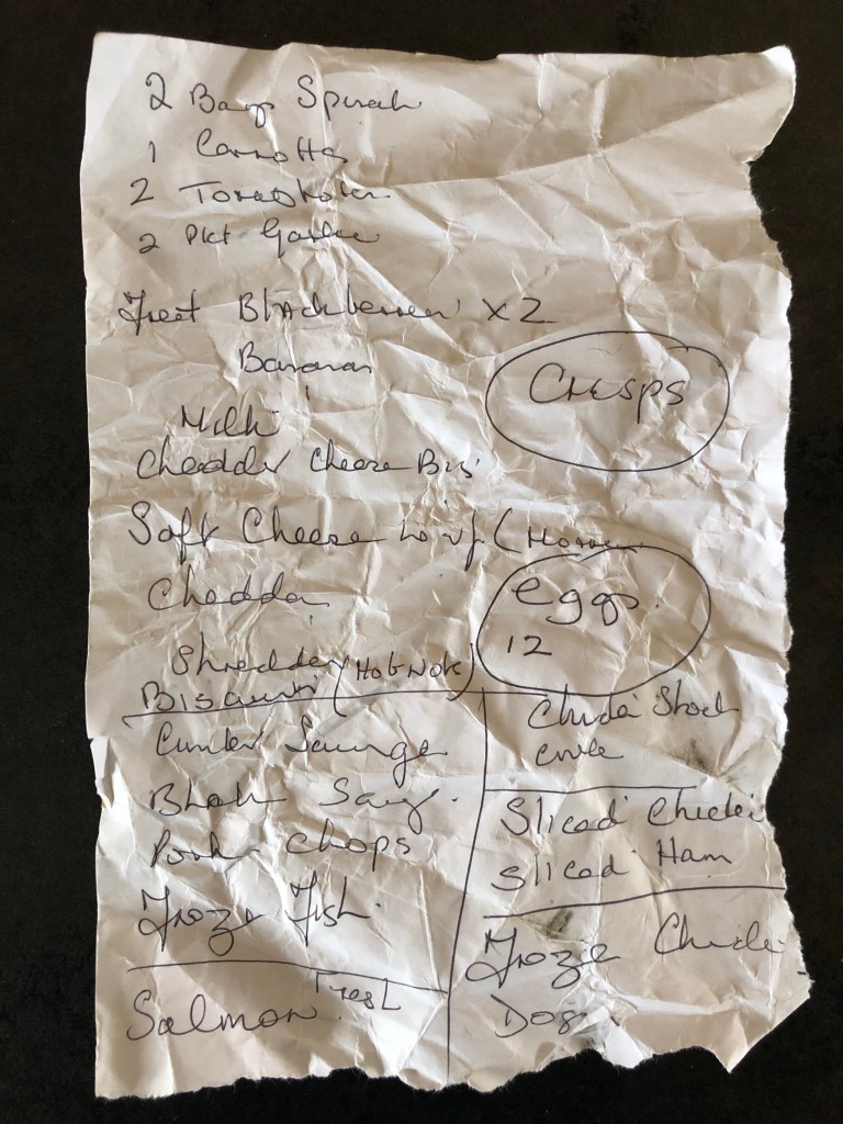 A vintage list from 7 years ago. A deceptively large shopping list as there are multiple items on each line.