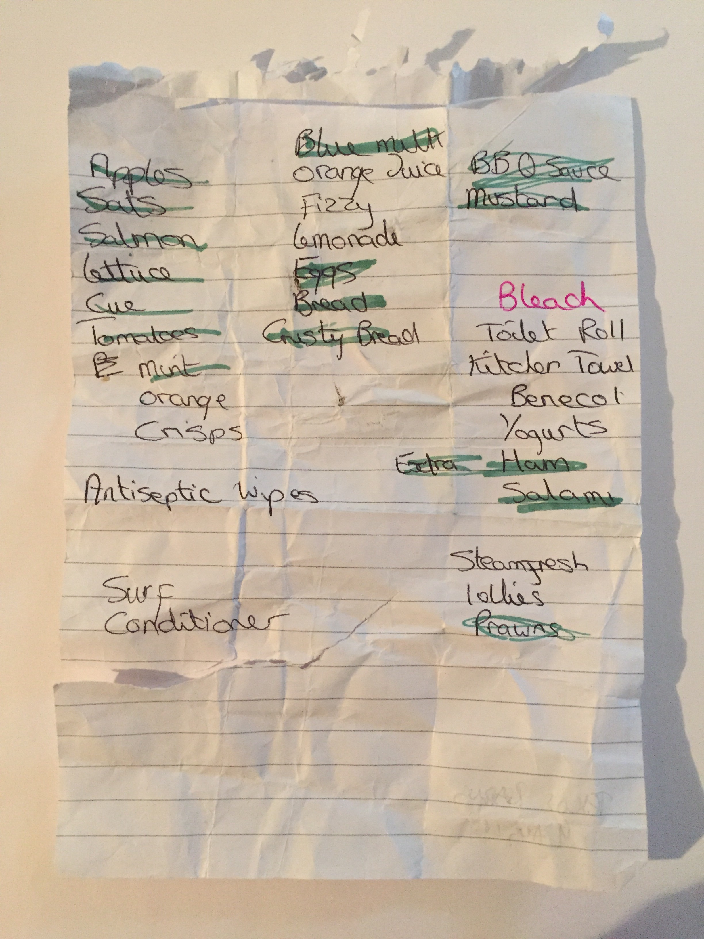 A vintage list from 7 years ago. A deceptively large shopping list as there are multiple items on each line.
